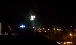 Yesterday though, it finally started to feel like spring. I went for a nearly 6-mile run to try and prep for the River Bank Run next week and actually got a little bit of sun, and last night we went downtown to the Brew Pub. Around 10, we heard the fireworks go off and headed up to the roof to watch.