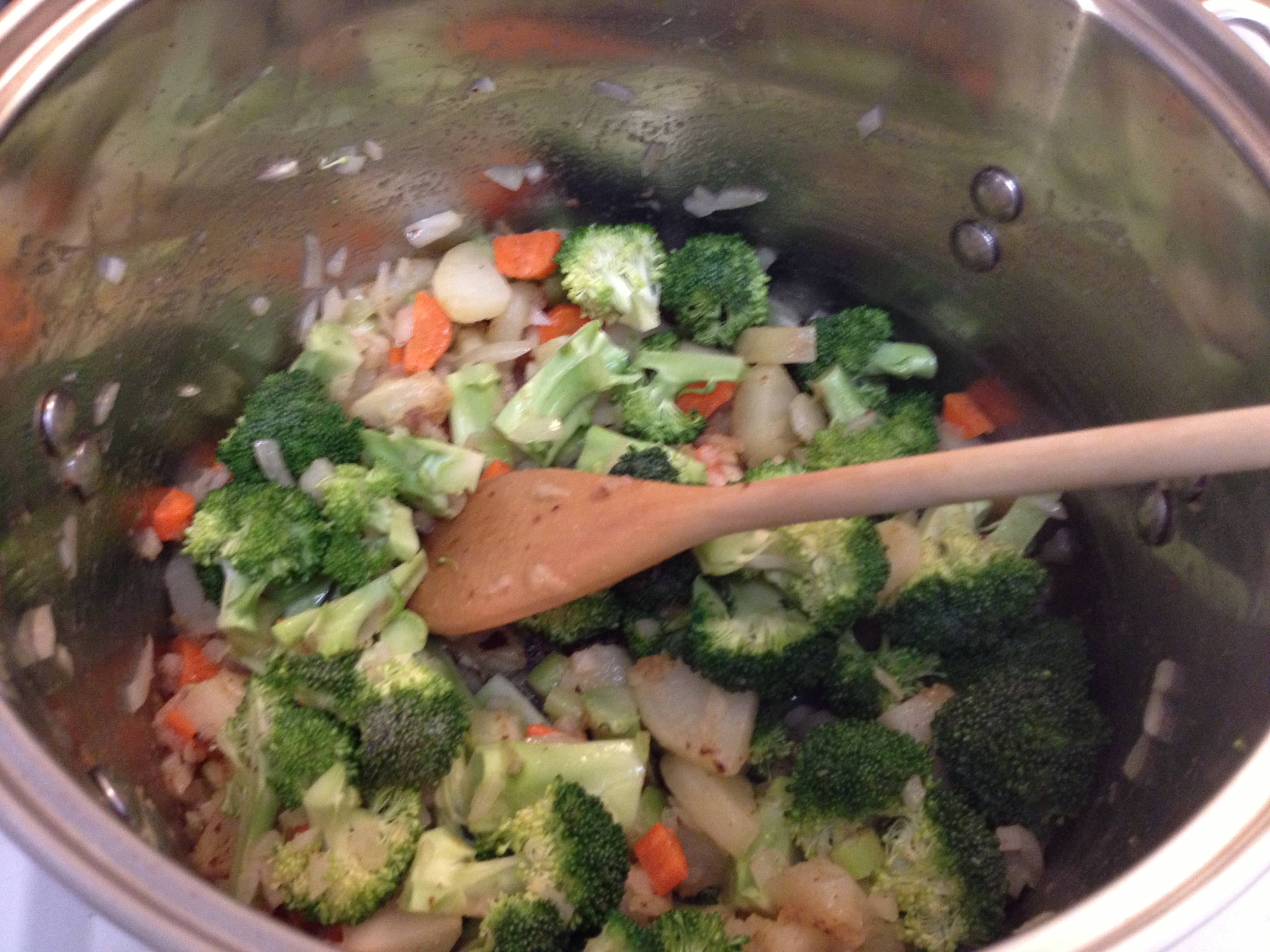 Despite my better efforts to cut the broccoli relatively small, I still found it was almost a bit too big to be acceptable for soup purposes. It’s one of the few times I’ve wished I had a chopper or broccoli florets. Fresh florets might work better than broccoli crowns, actually.